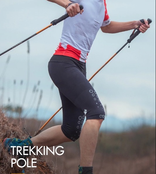 Bâton trail carbone d’une longueur de 120cm pliable permettant le transport dans son sac à dos.